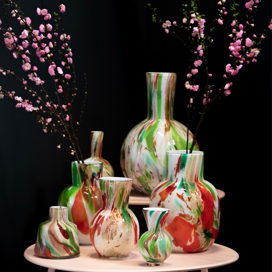 Cette verrerie soufflée à la bouche est conçue pour donner plus de force, d’équilibre et de caractère aux compositions florales.